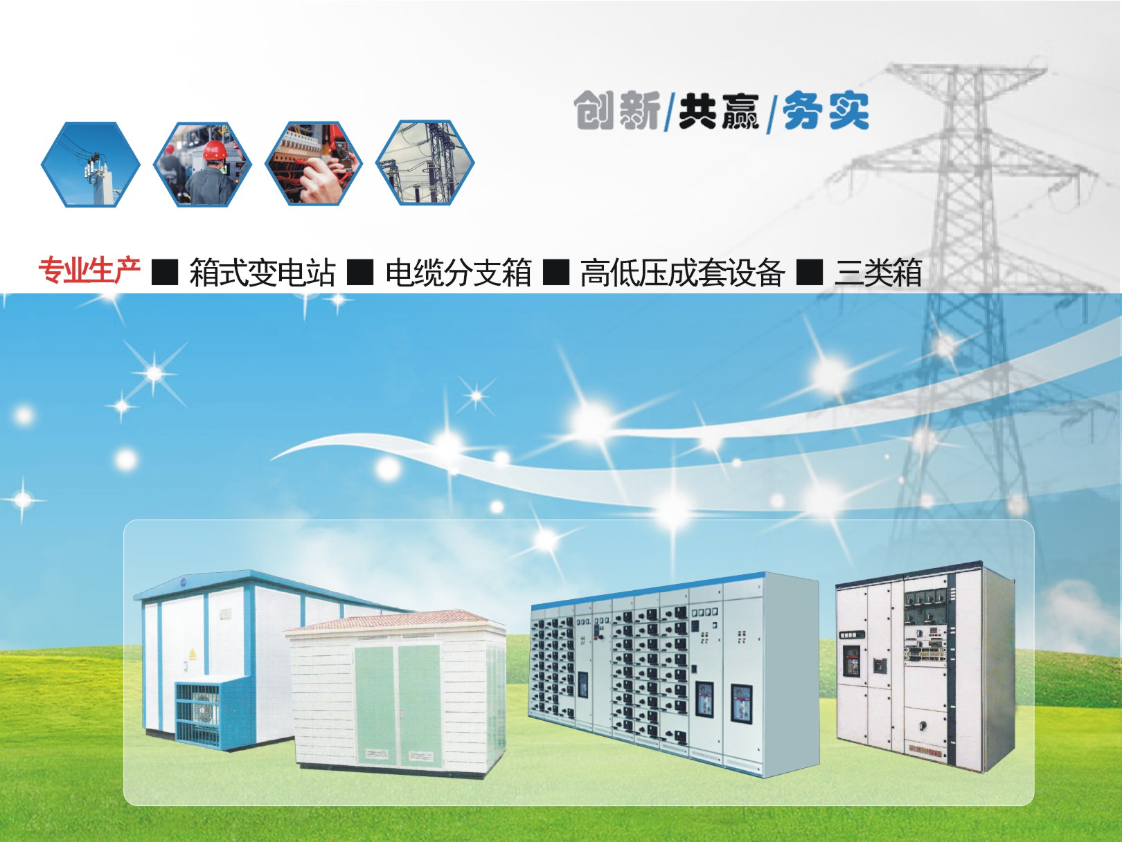公司自行、聯合研制開發箱式變電站、高低壓開關成套設備等系列產品,廣泛應用于能源、電力、工礦、通訊、交通、石化、冶金建筑等領域。